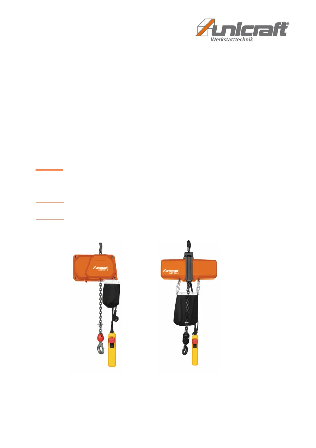 The motor of your Unicraft Chain Hoist might not be working due to several reasons: there could be an inadequate power supply (check the power supply), a wrong phase conductor (change the phase), a defective switch (replace the switch), a defective rectifier (replace the rectifier), a defective transformer (replace the transformer), or the motor itself could be defective (replace the motor).