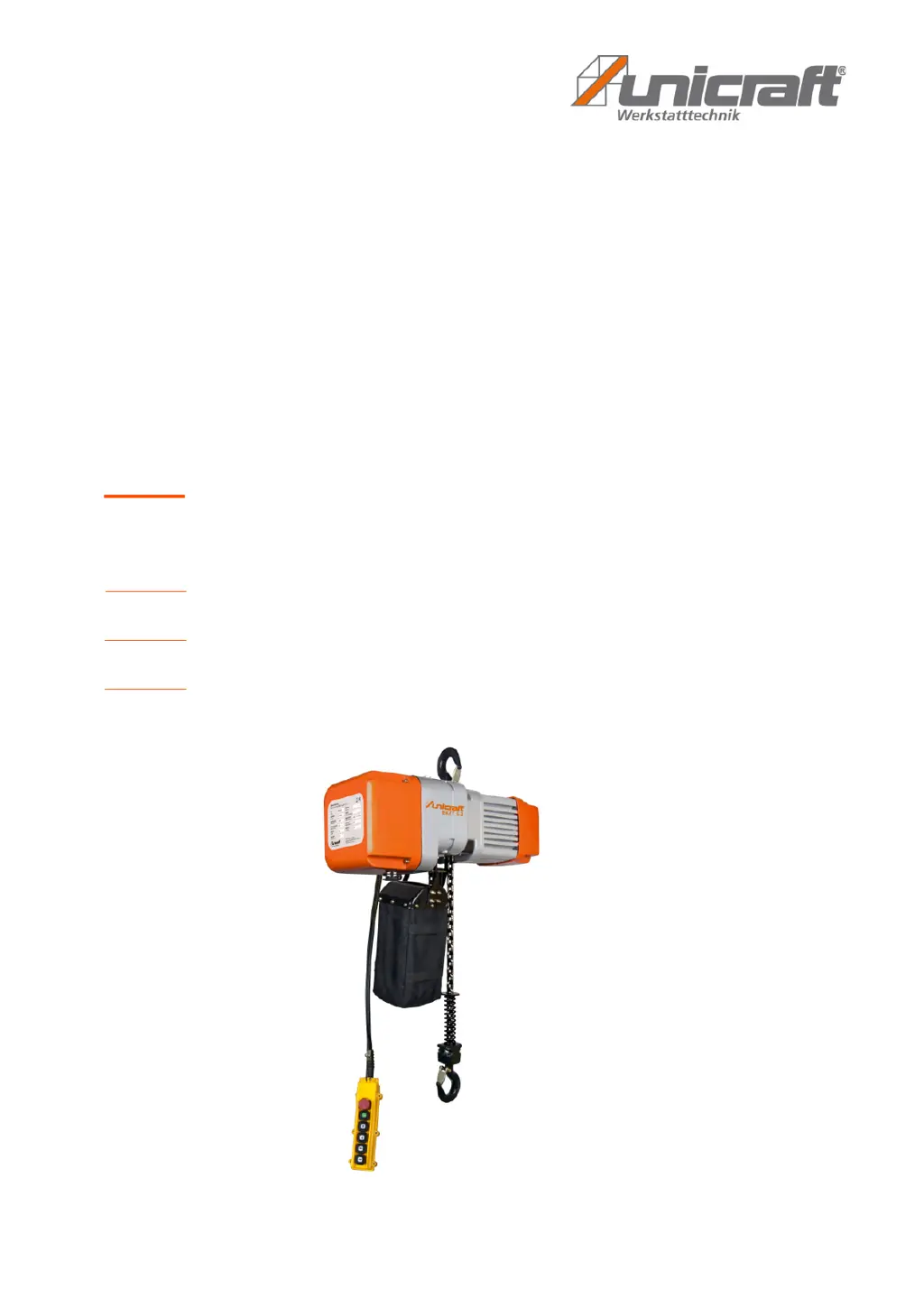 If the motor of your Unicraft Chain Hoists isn't working, there are several potential causes. It could be due to an inadequate power supply, so you should check the power supply first. Other possible causes include a wrong phase conductor (change the phase), a defective switch (replace the switch), a defective rectifier (replace the rectifier), a defective transformer (replace the transformer), or a defective motor (change the motor).