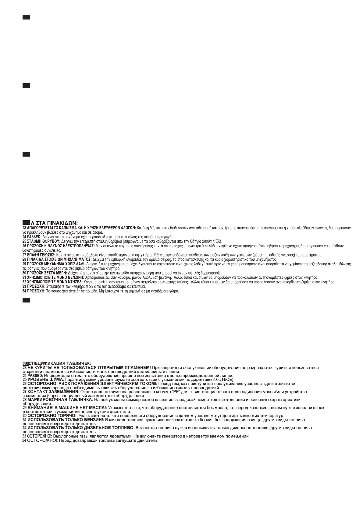 29 VÆR OPMÆRKSOM PÅ, MASKINEN UDEN OLIE: Angiver at maskinen har forladt fabrikken uden olie, og man er således nødt til at fylde tanken i henhold til anvisningerne i motorens brugervejledning,