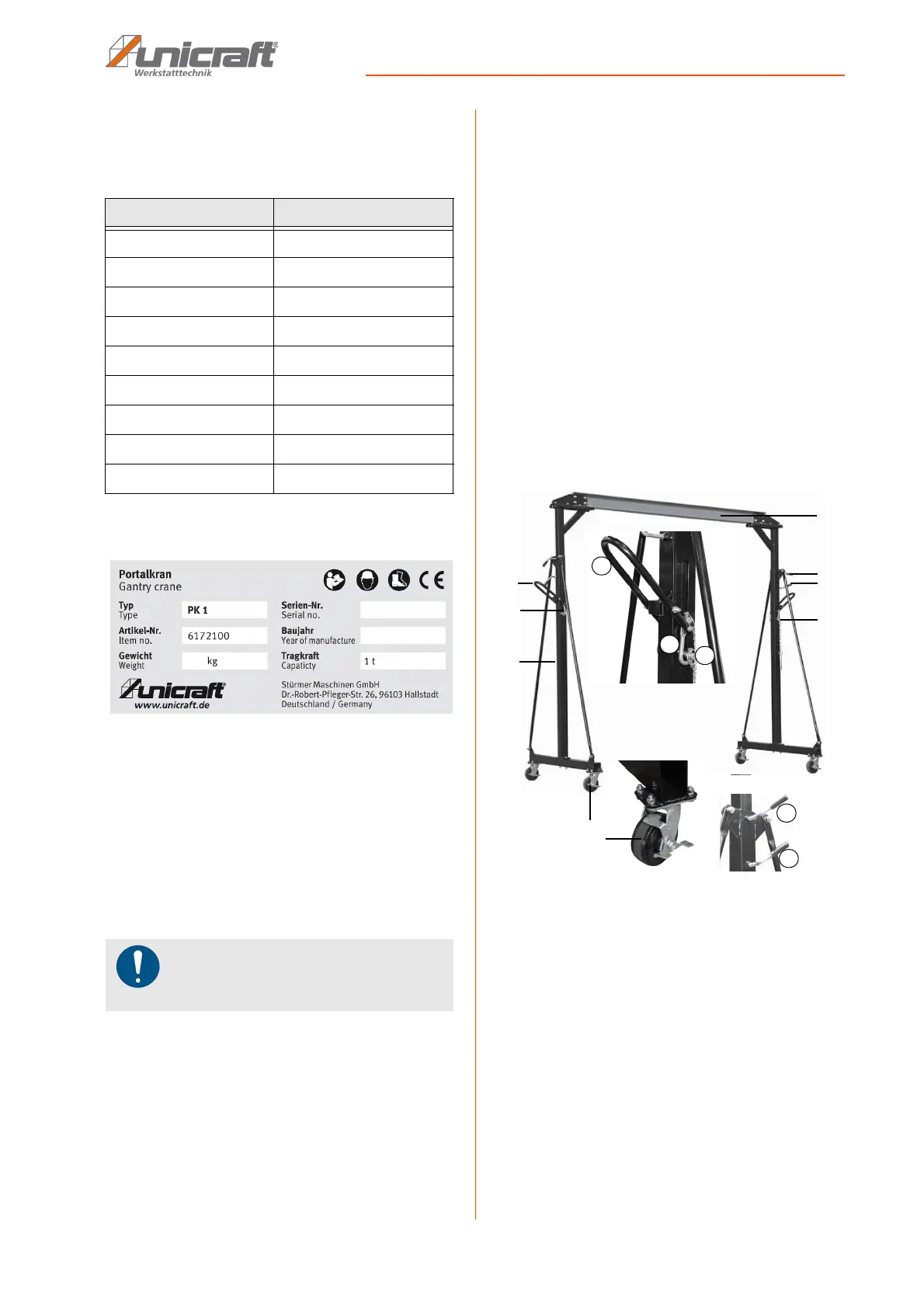 Fig. 2: Type plate Mobile gantry crane PK 1