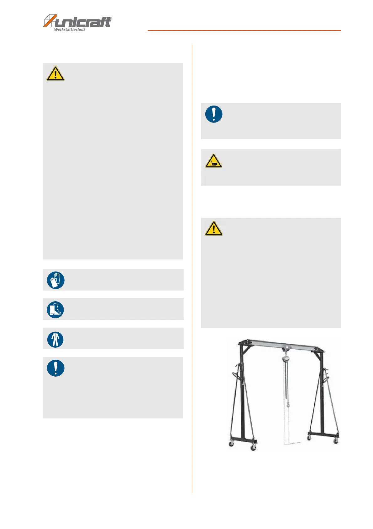 All work with the gantry crane may only be carried out