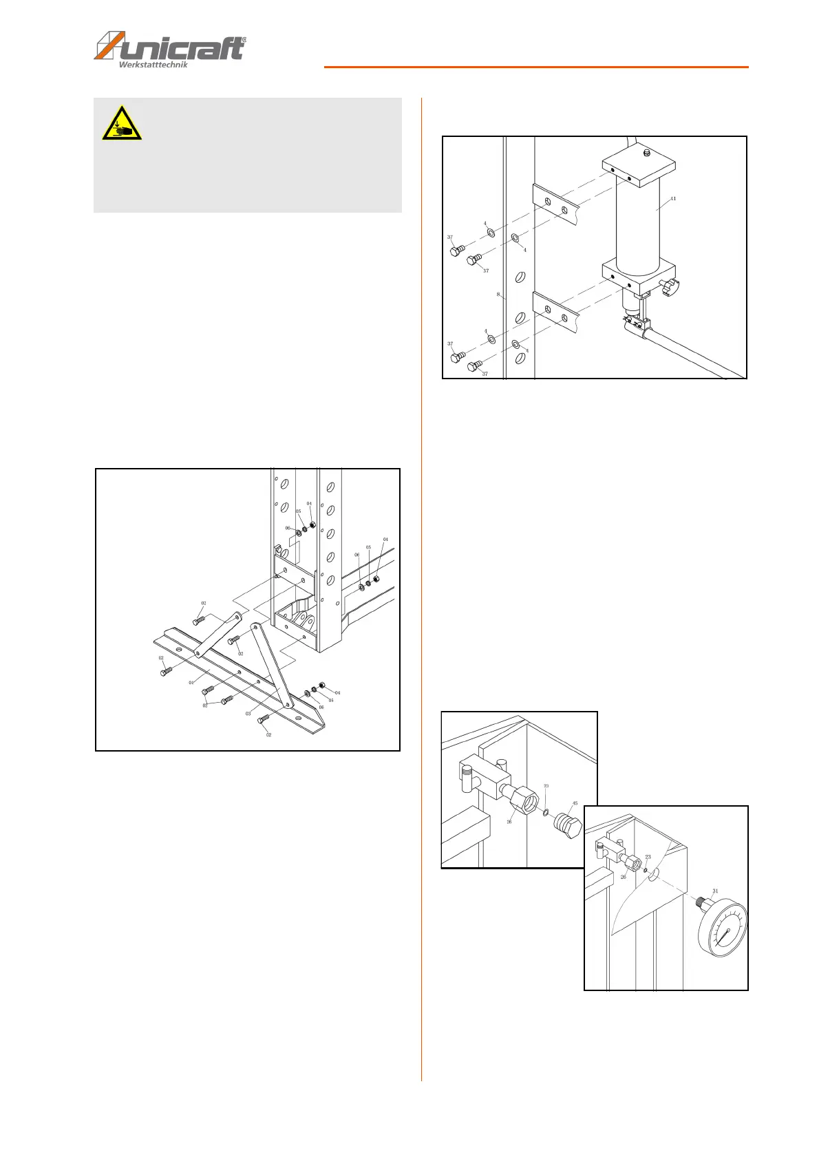8.1 Installing crossbeam feet and press table