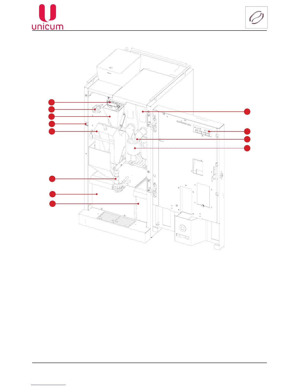 Following are installed inside the body: drinks preparation units, ingredients’ containers, waste containers.