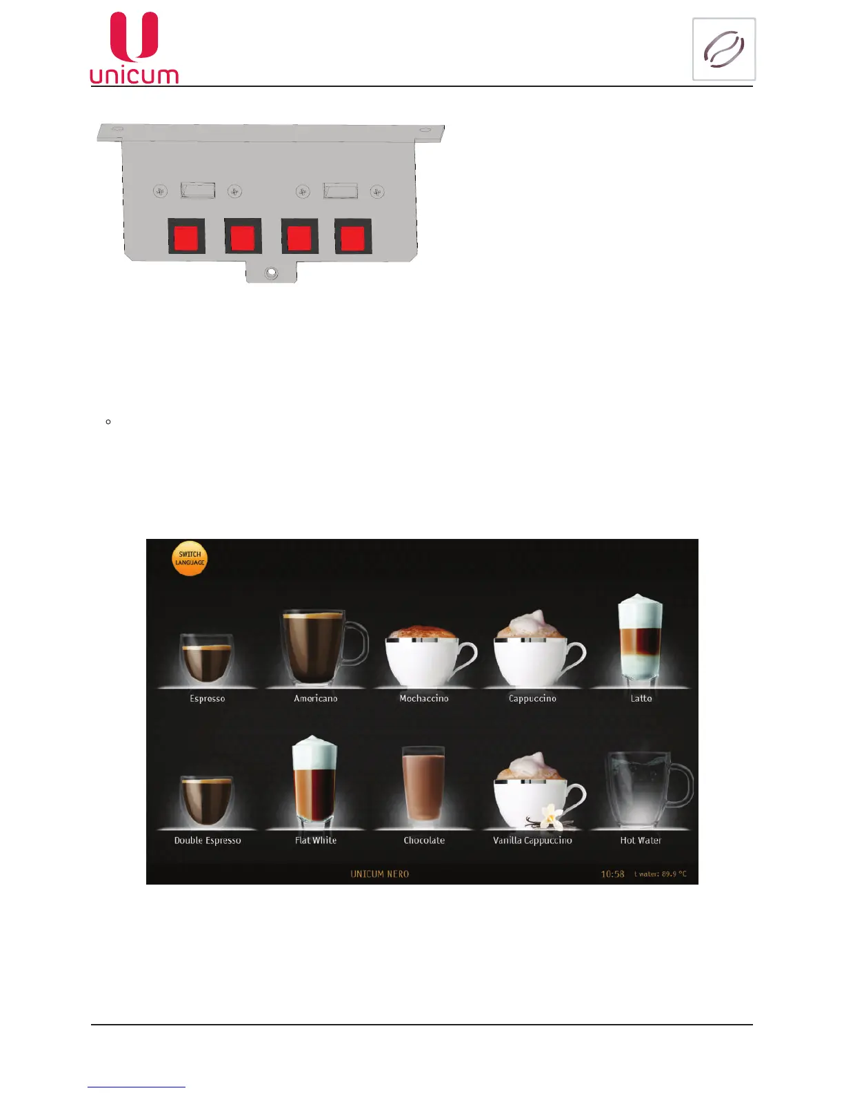 • Flushing-accesstomenuoptionforushingthevendingmachine’svariousunits