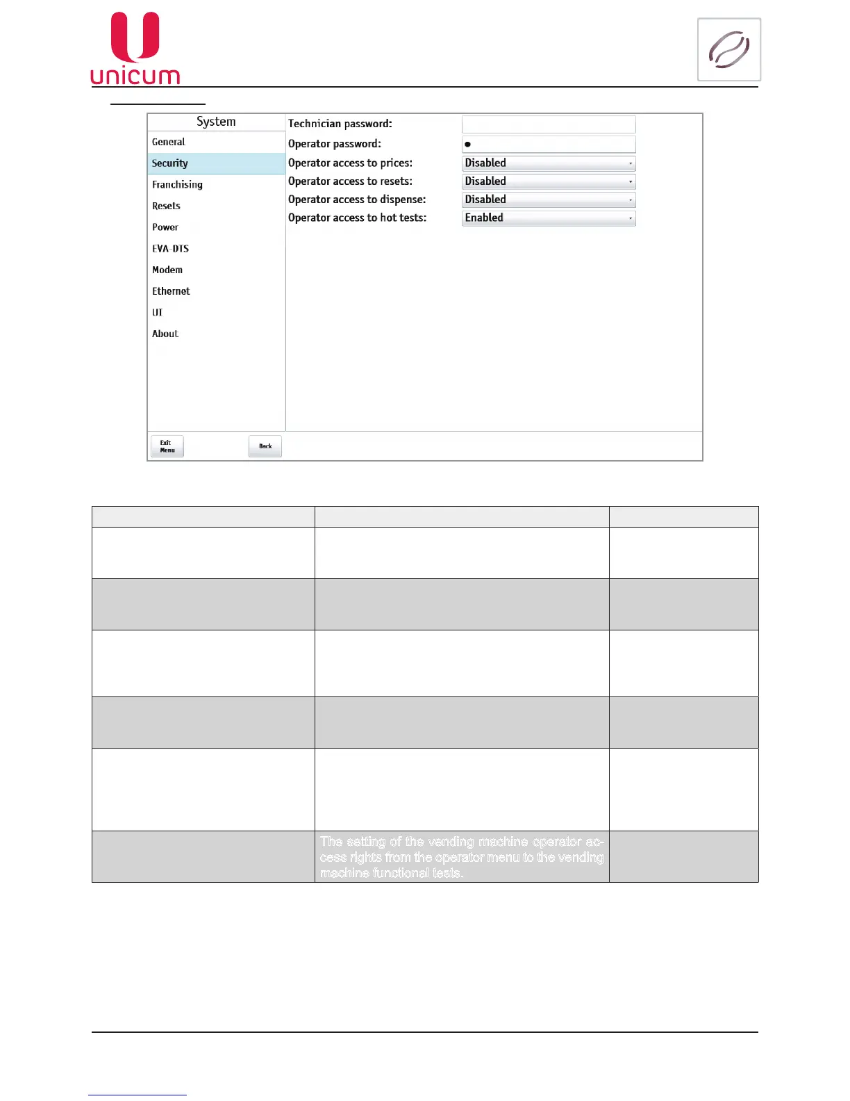 Operator access to dispense Setting access rights of the operator of the ma-