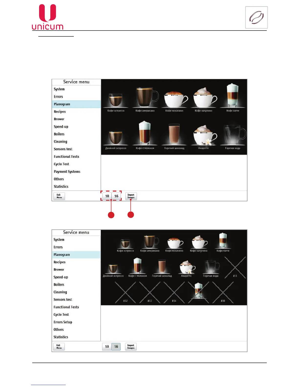 The buttons (1) are used for changing between the planogram layouts. Furthermore when in the vending mode