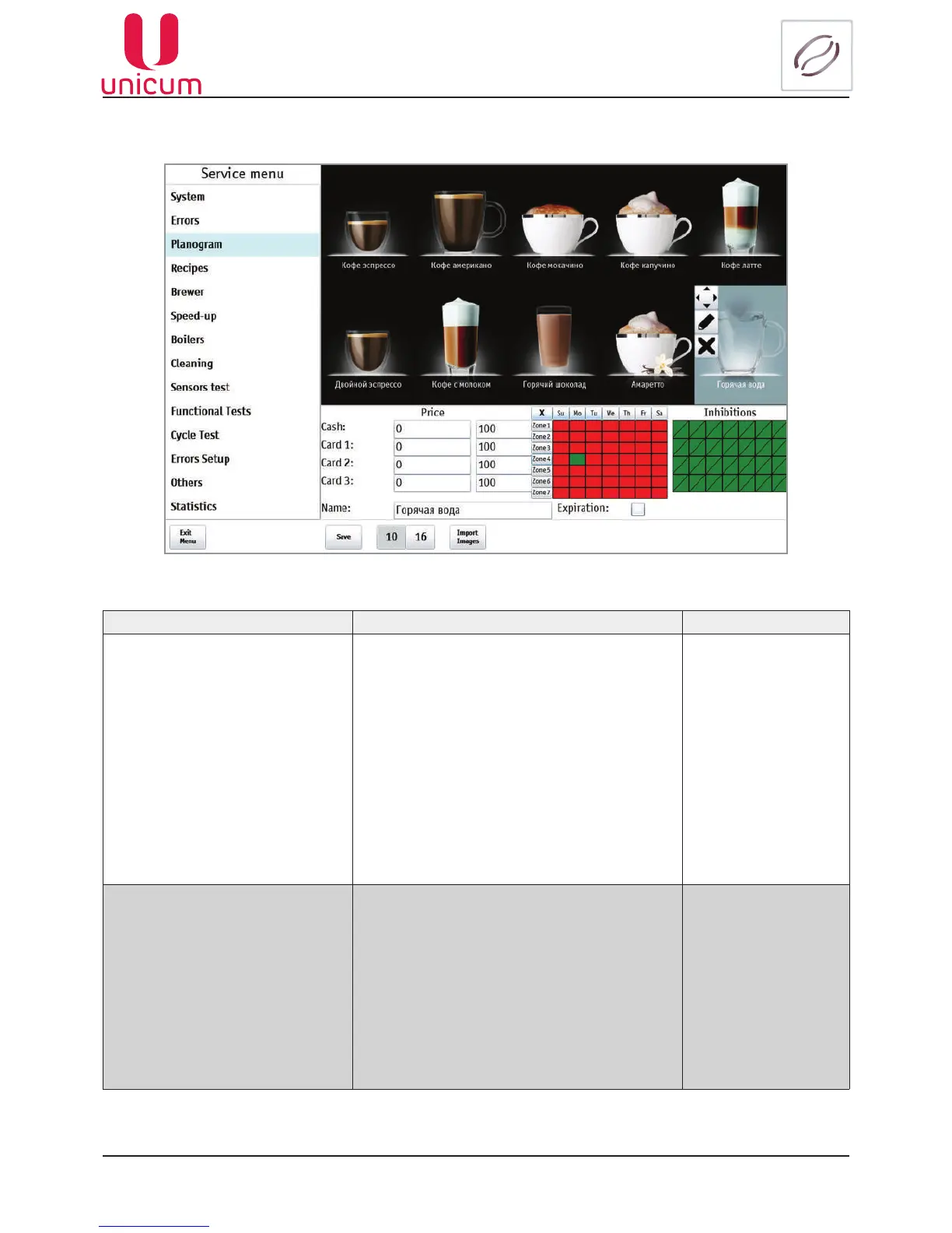 To set the discount/surcharge and prohibitions, touch the string opposite to the concerned price Cash,