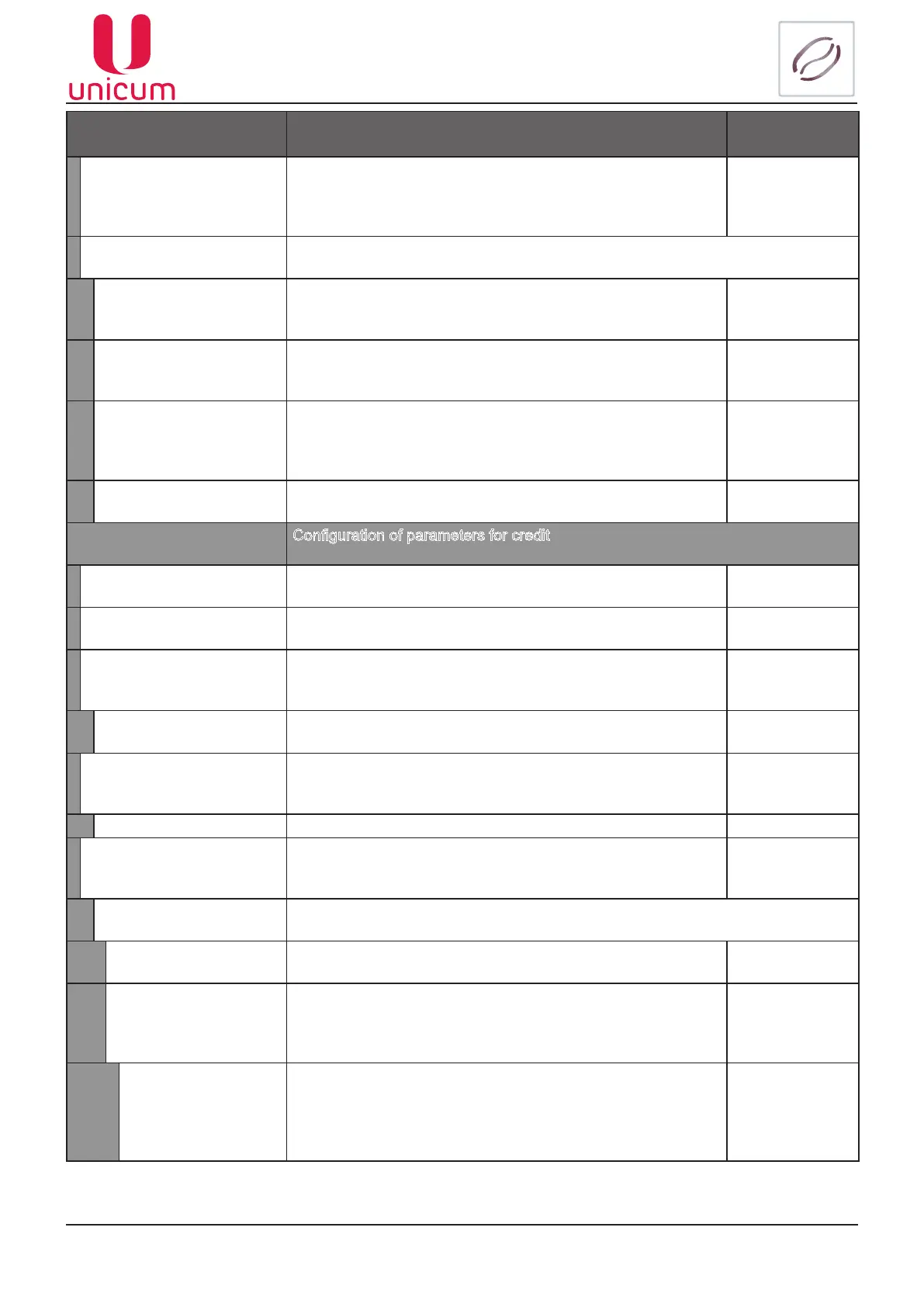 Conguration of parameters for credit