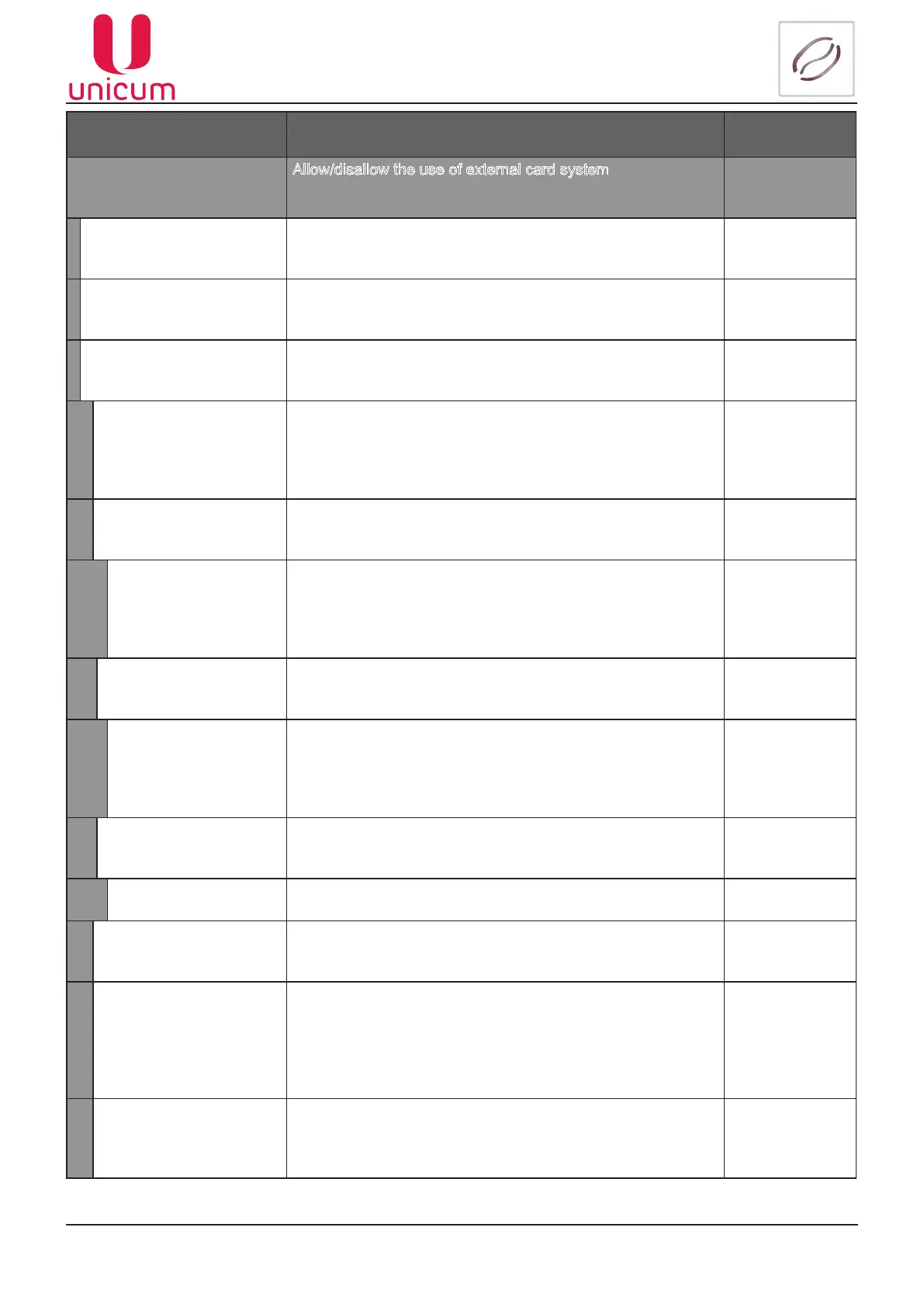 1.2.10 Serial cashless Allow/disallow the use of external card system No