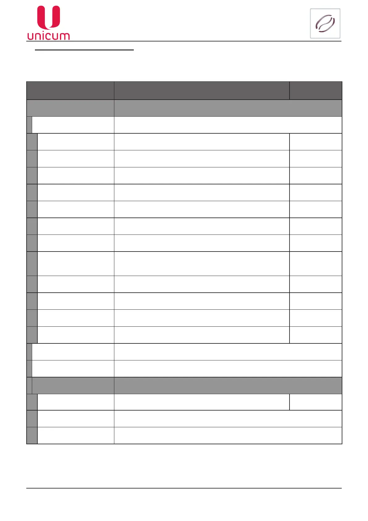 Sub-menu Description Value