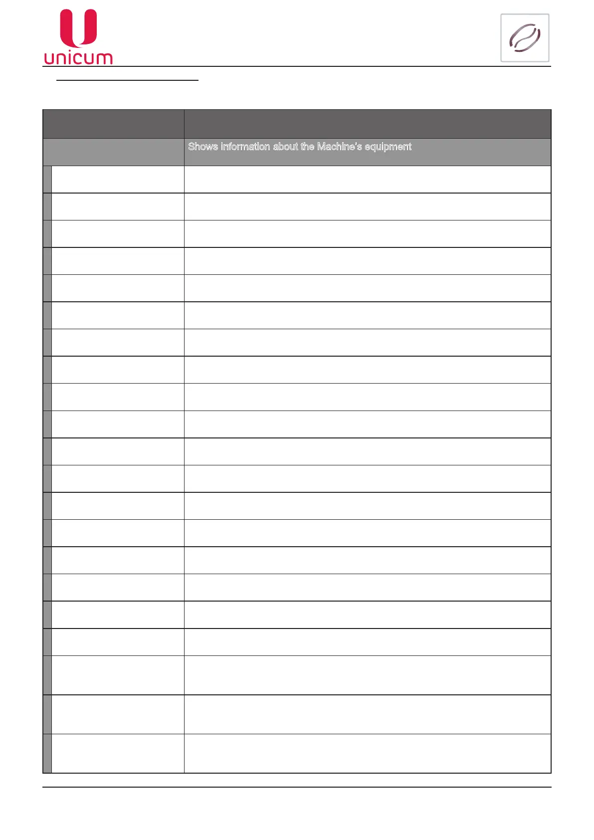 2.8 Data Shows information about the Machine’s equipment