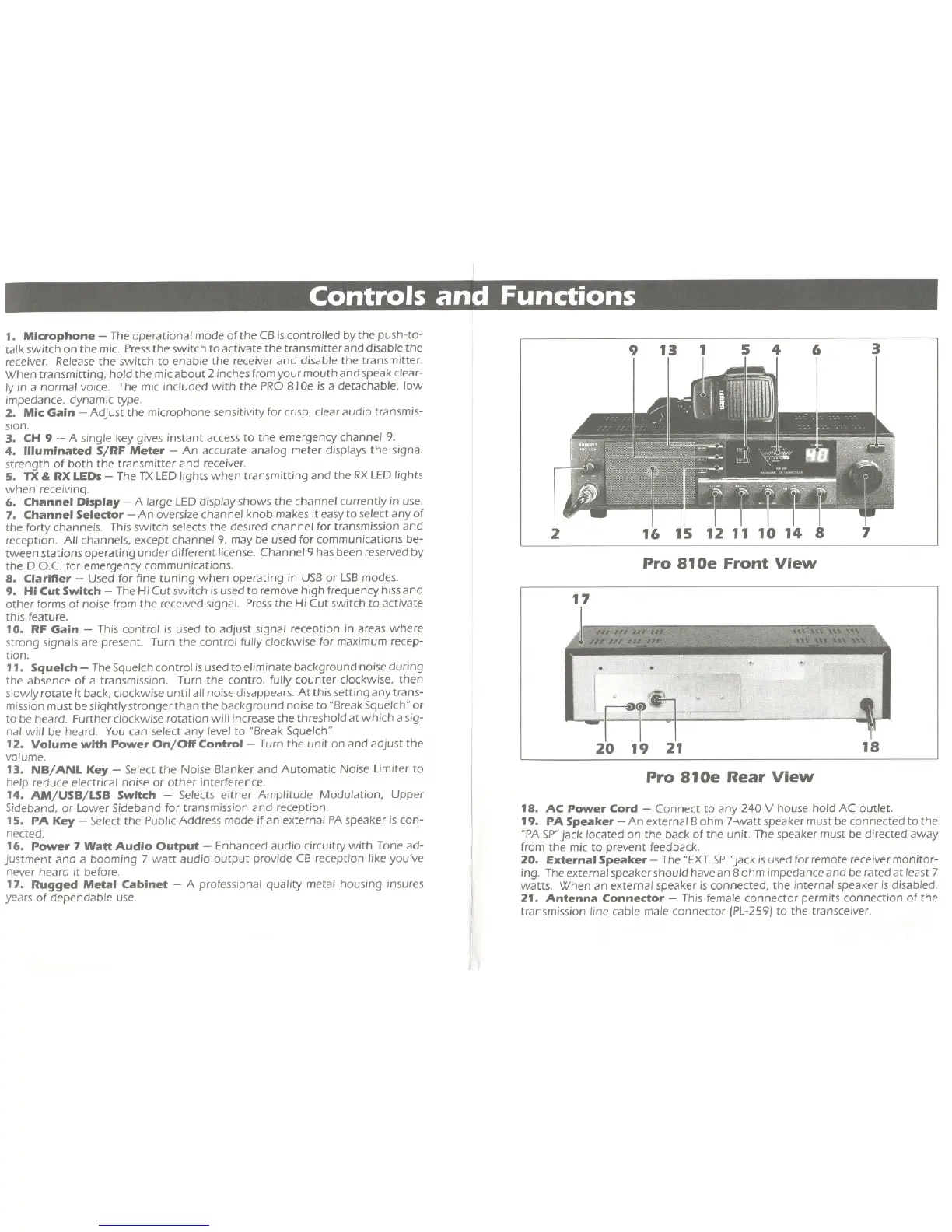 15. PA Key - Select the Public Address mode ifan external PAspeaker is con-