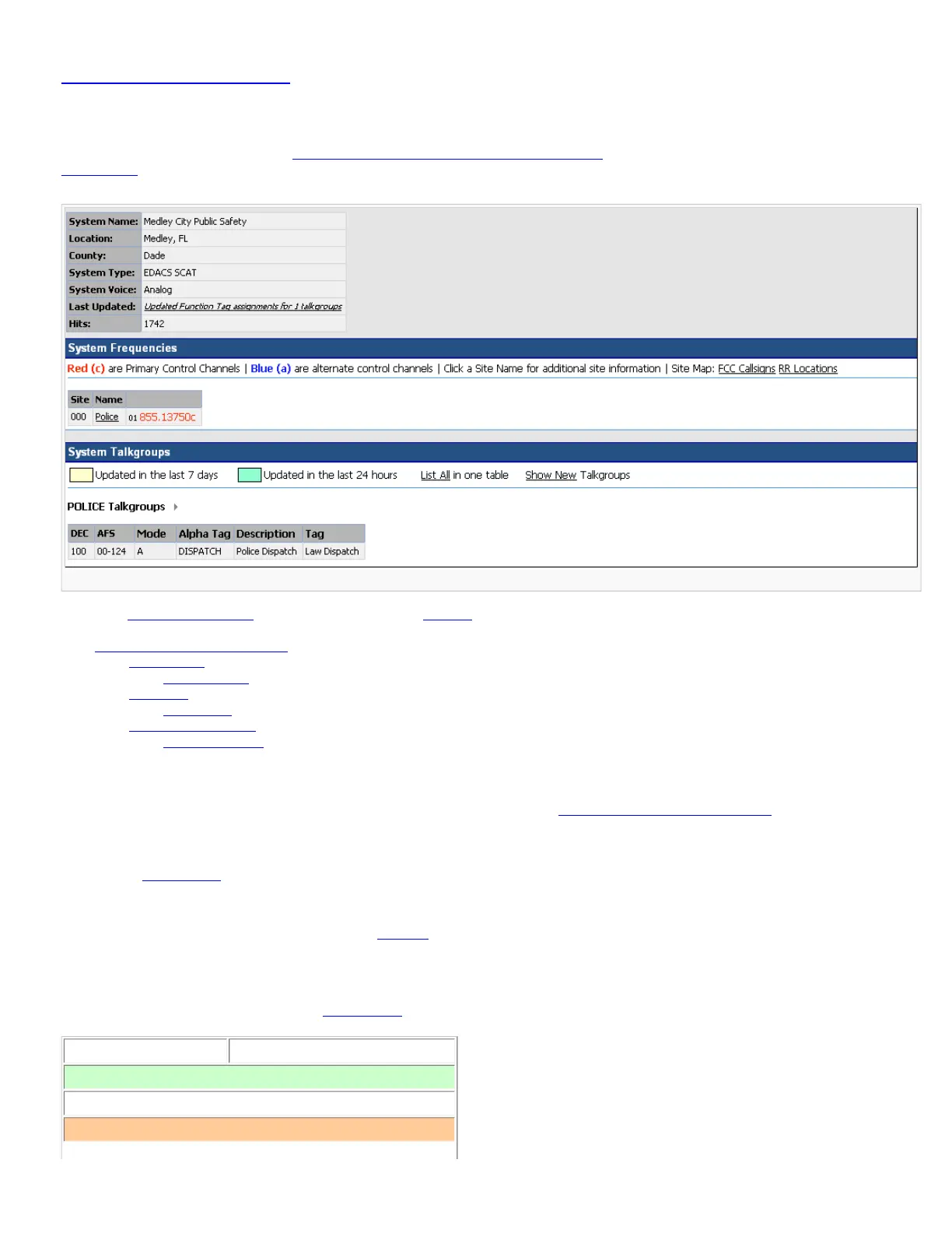 This section deals with EDACS SCAT systems. Click here for information on EDACS Wide and Narrow systems. Below is an example of an EDACS SCAT system from
