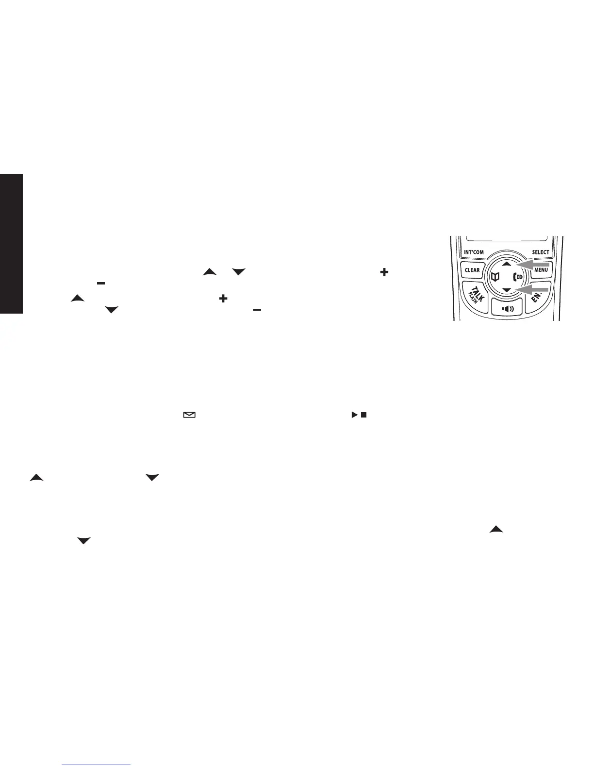 on the handset or VOLUME on the base to make it softer or