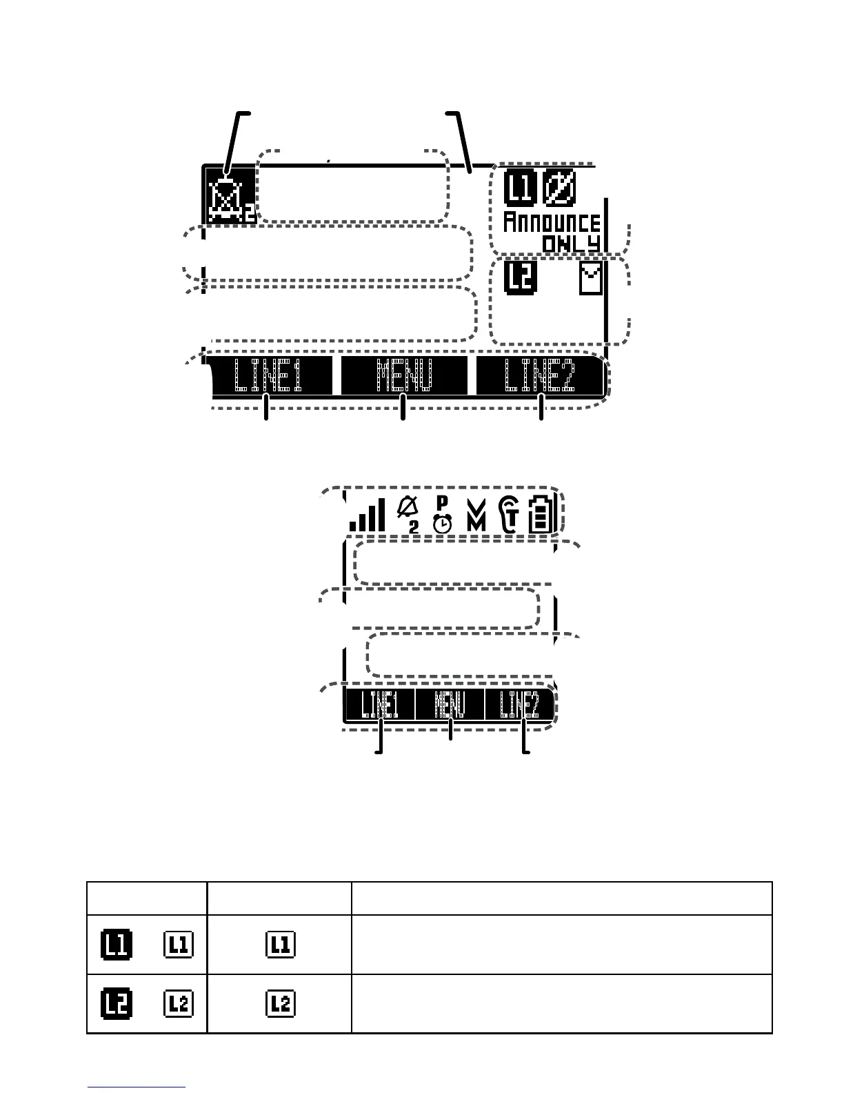 hold, etc.) applies to line 1.