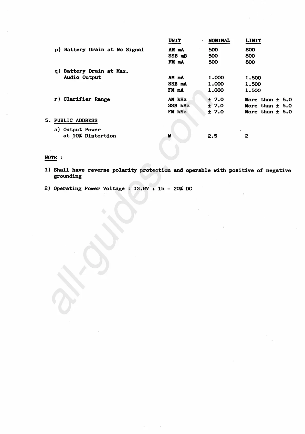 2) Operating Power Voltage : 13.8V + 15 - 2036 DC
