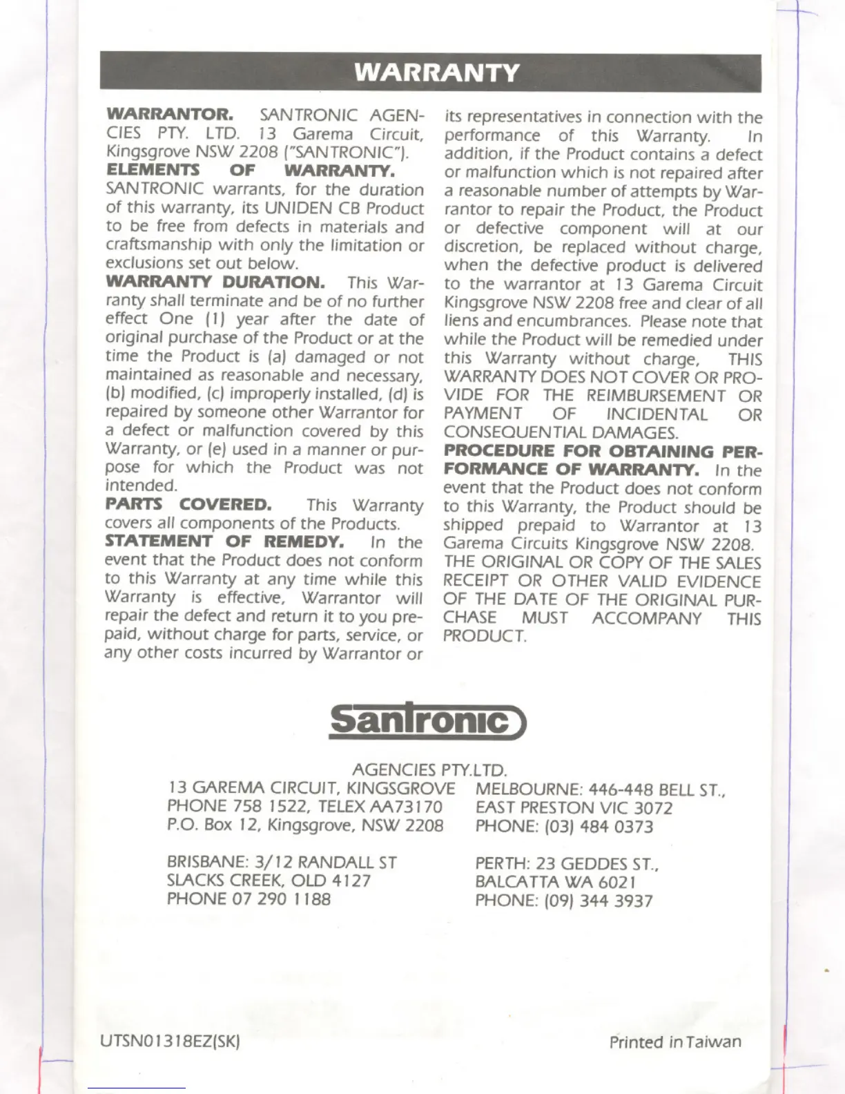 to the warrantor at 13 Garema Circuit