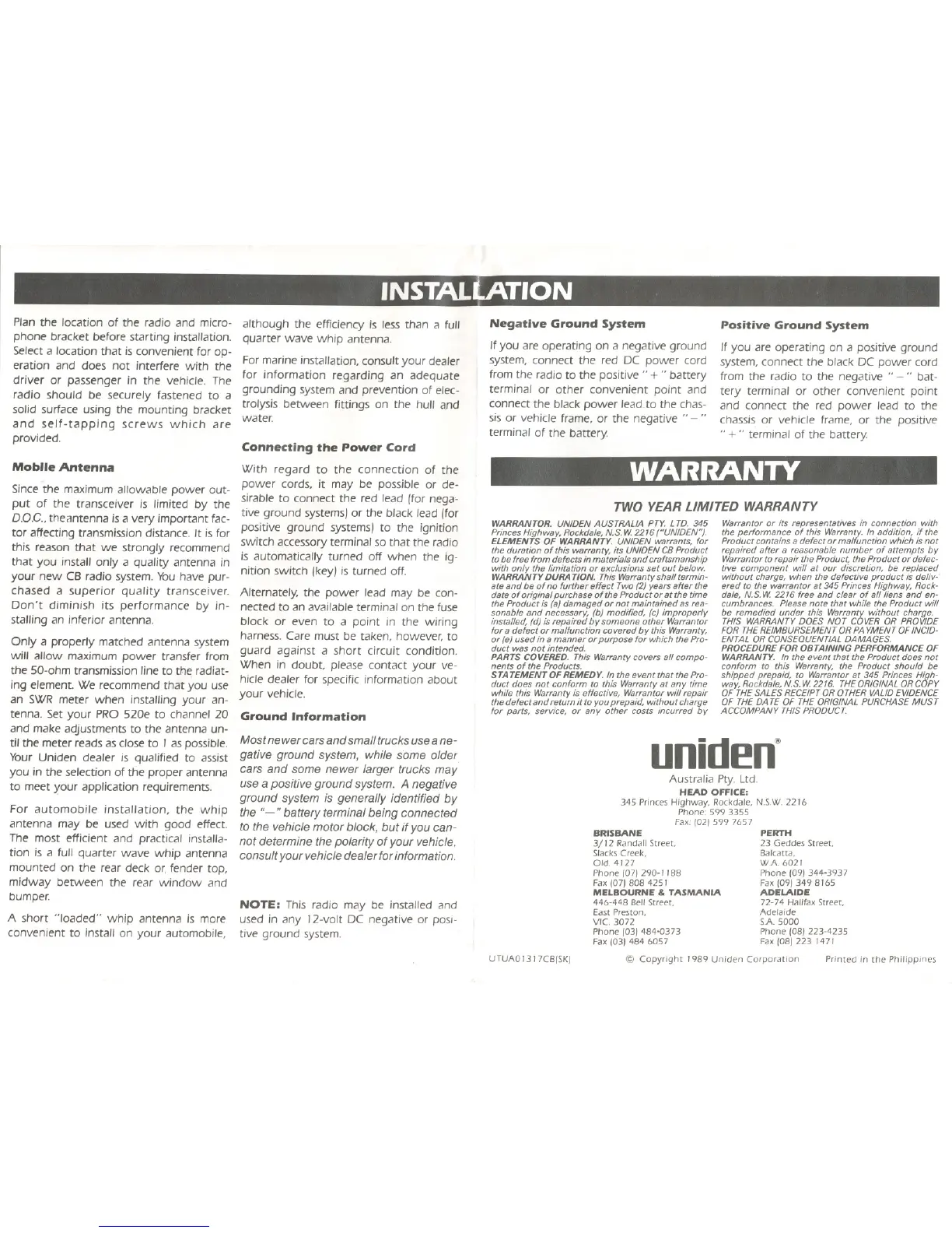 @ Copyright J989 Uniden Corporation Printed in the Philippines