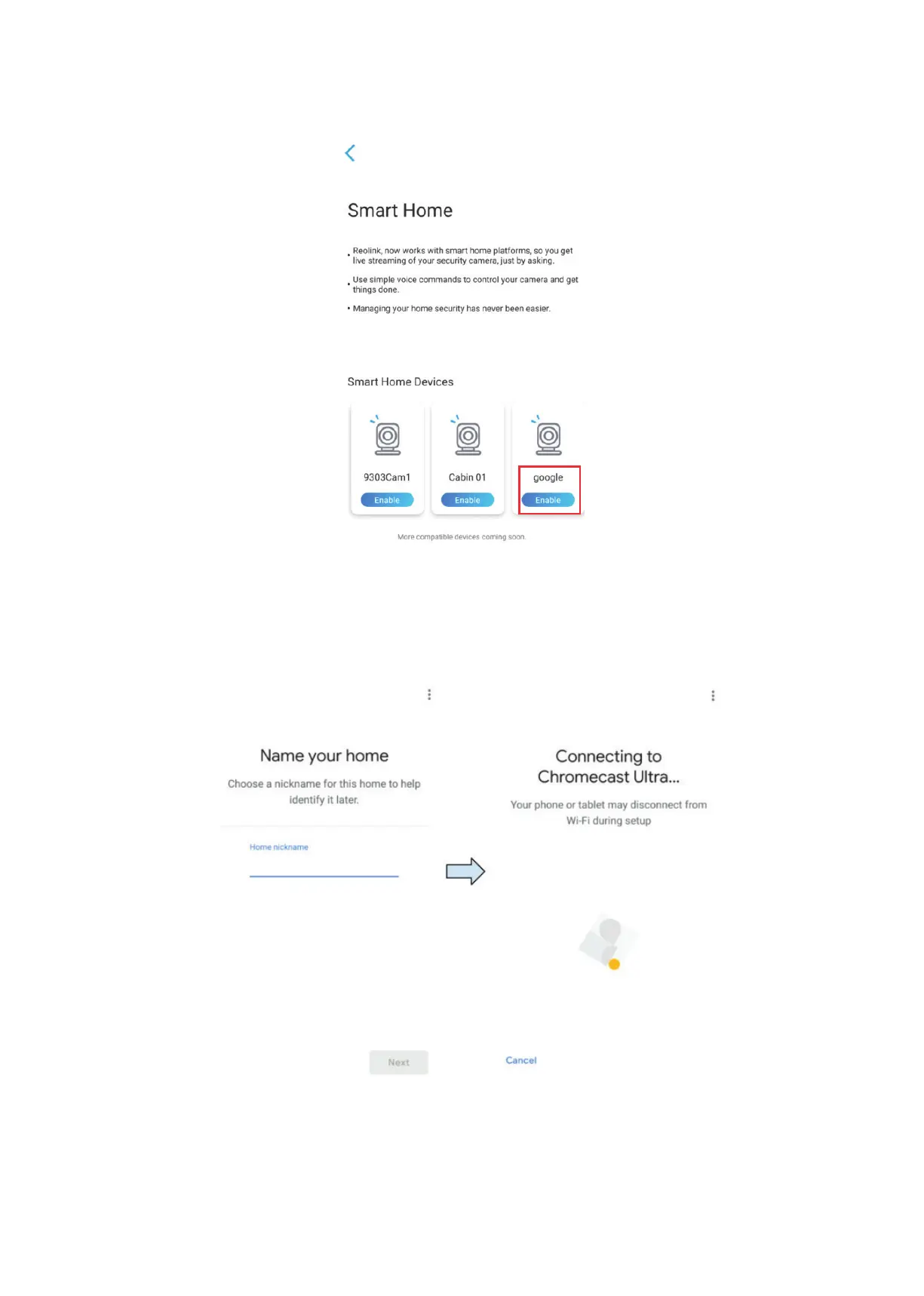 Uniden SOLO+ - Step 2: Enable Device in Smart Home Page; Step 3: Launch Google Home and Create Home; Step 4: Name Your Home and Connect