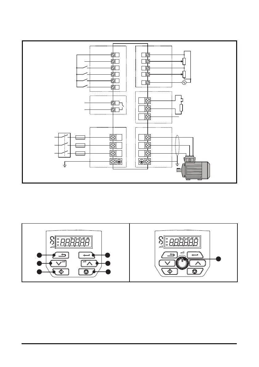 The keypad and display provide information to the user regarding the operating status of the drive and trip