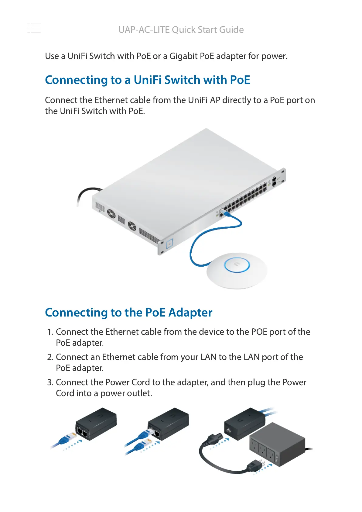 Connect the Ethernet cable from the UniFi AP directly to a PoE port on