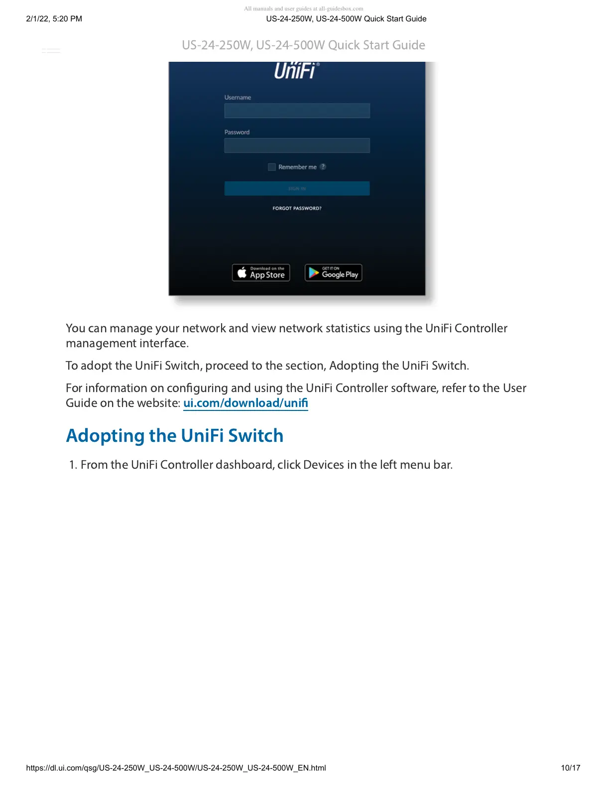 To adopt the UniFi Switch, proceed to the section, Adopting the UniFi Switch.