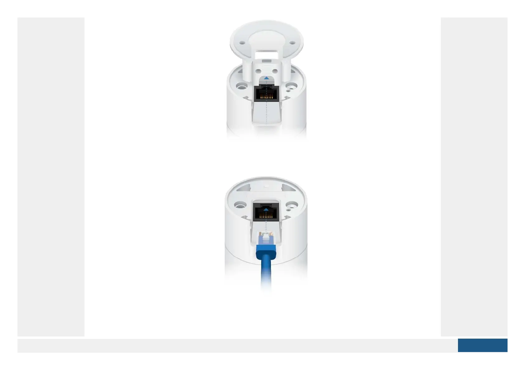 2. Insert one end of the RJ-45 cable into the Ethernet Port and the other end into a PoE