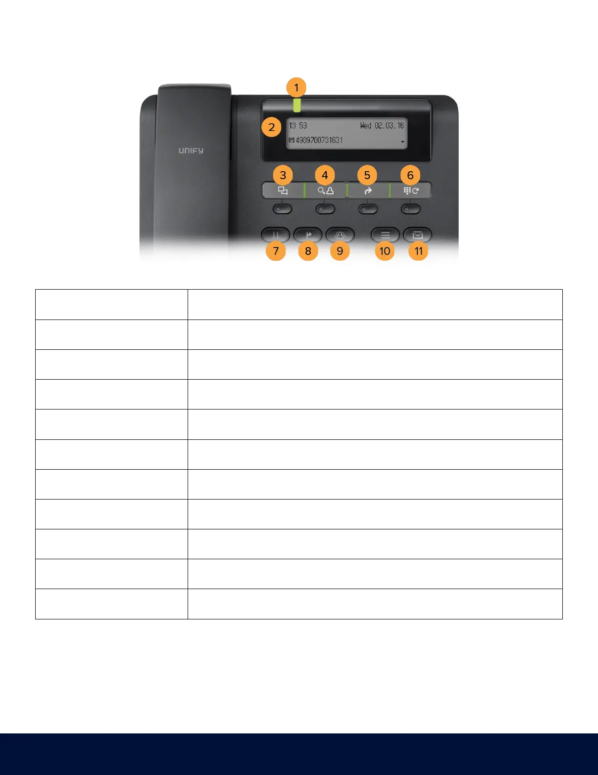 Signals incoming calls and new voicemails via the notification LED.