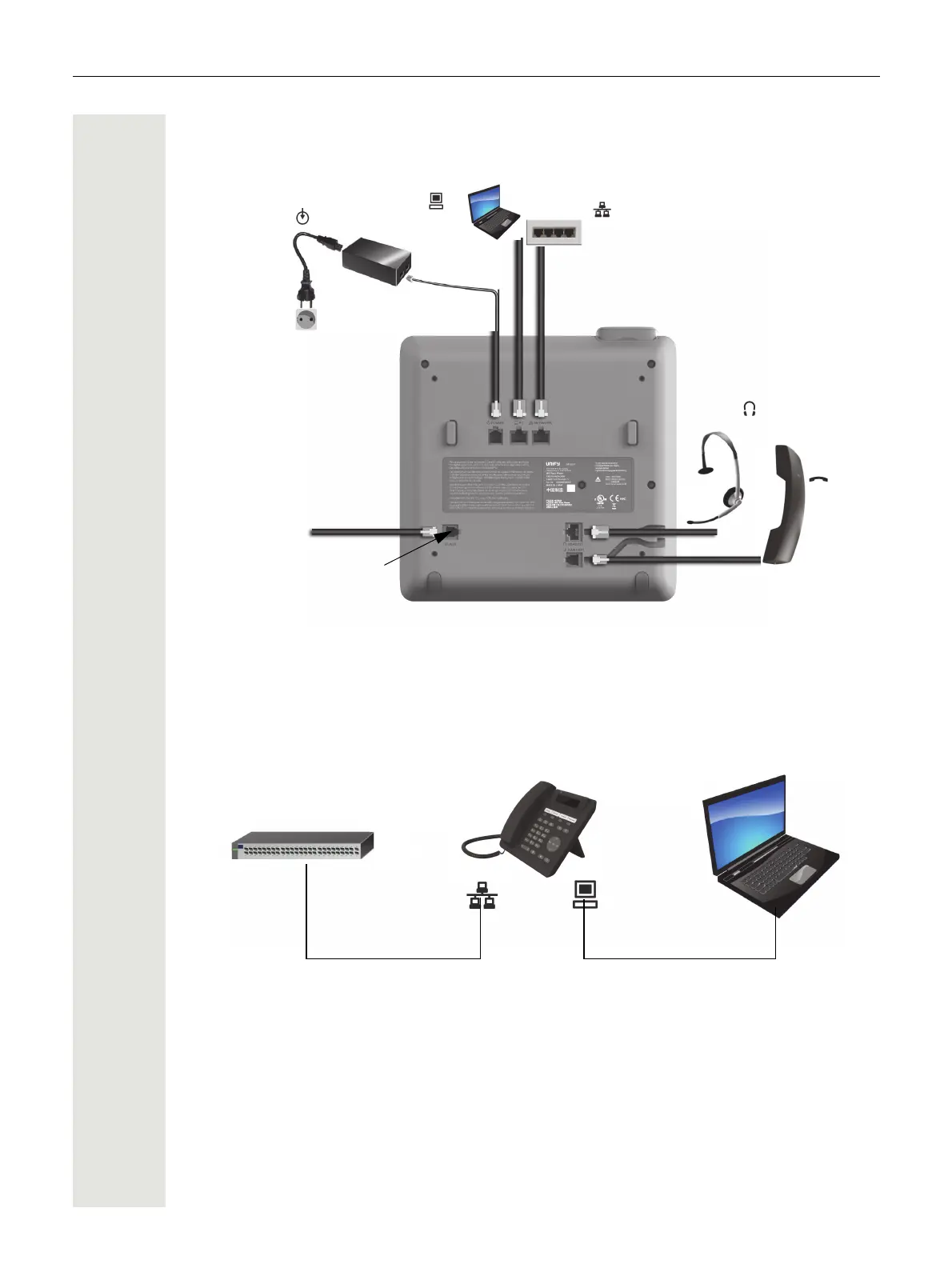 can also connect a PC with a LAN port to the LAN directly via the phone. The option for connecting