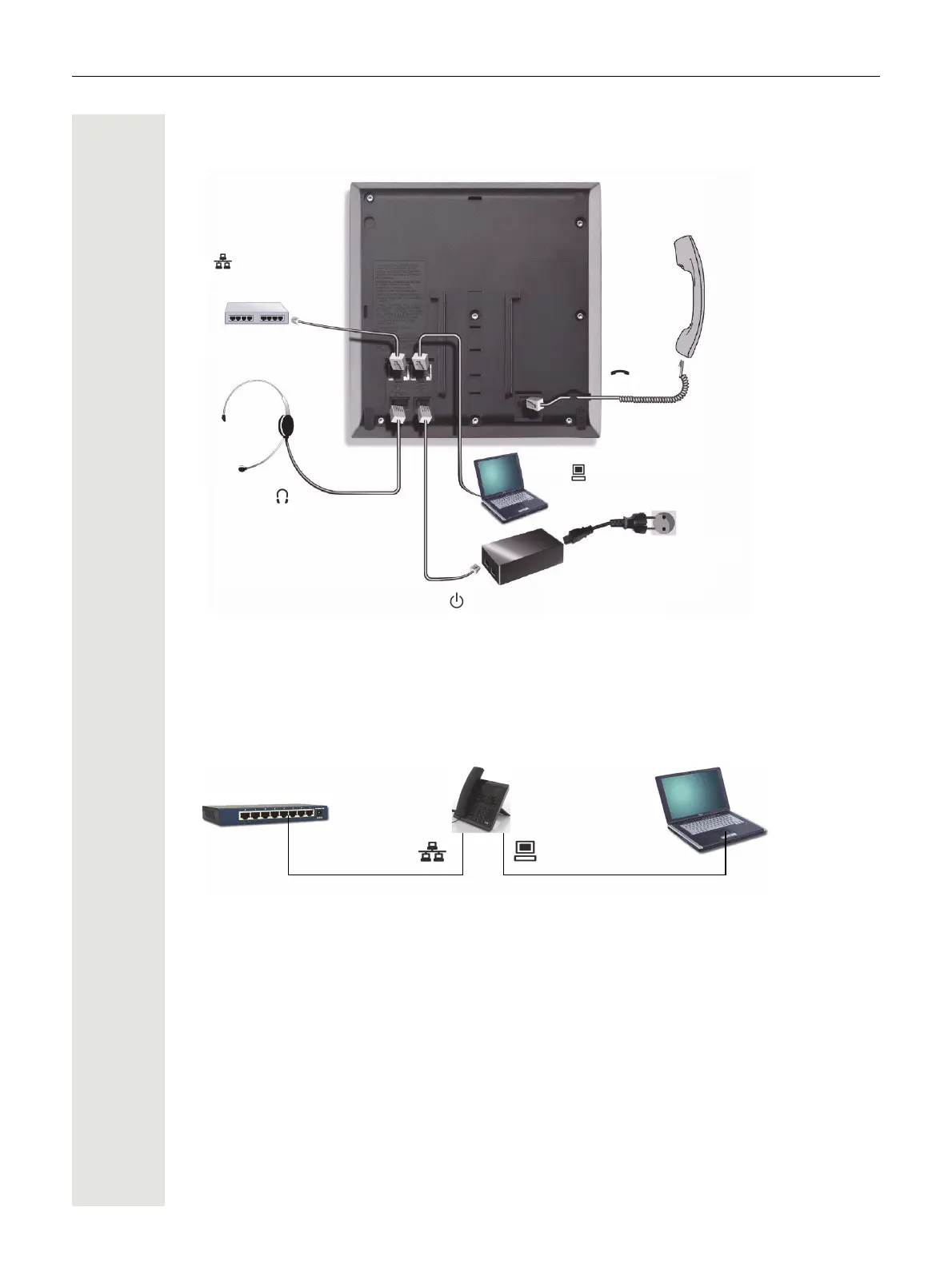 nect a PC to the LAN directly via the phone. The option for connecting the telephone and PC must