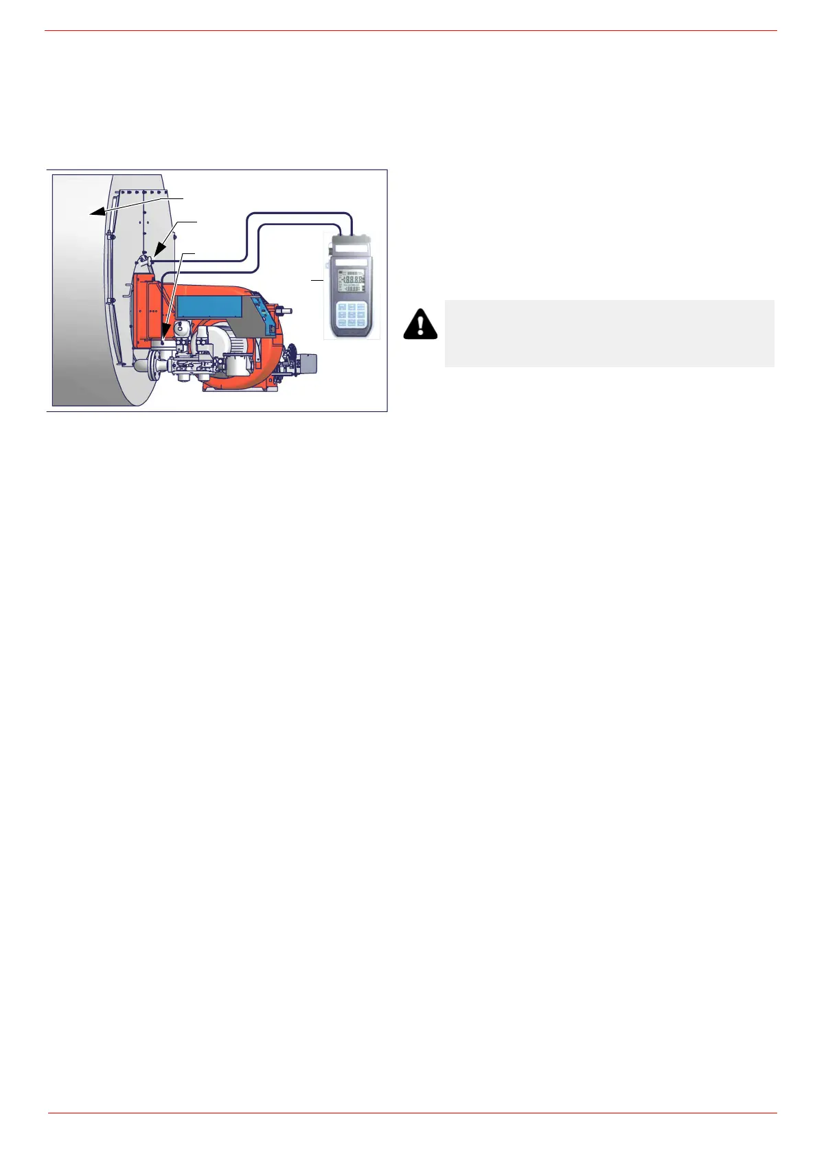 In order to measure the pressure in the combustion head, insert the pressure gauge probes: one into the combustion chamber’s