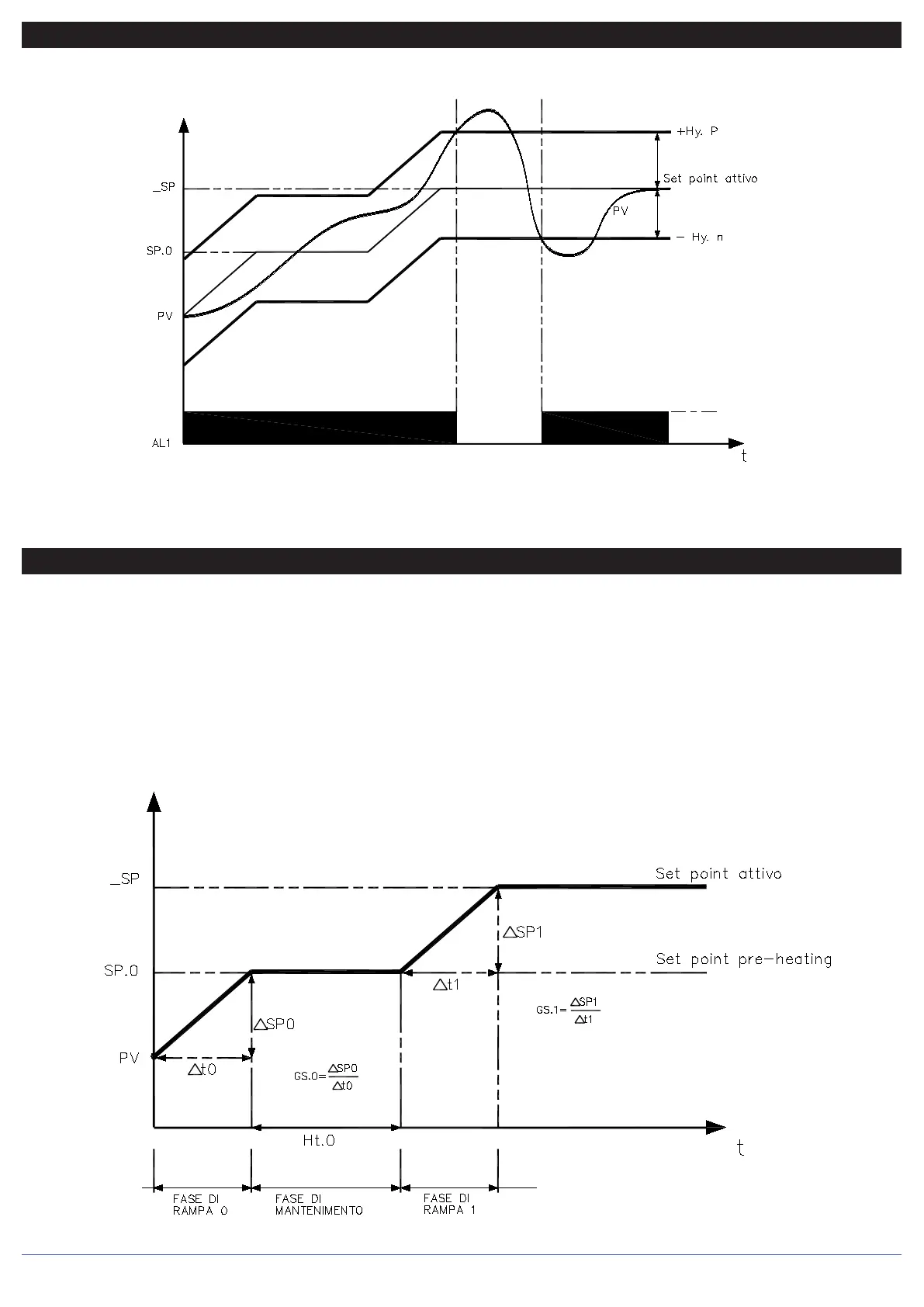 Enabled by setting GS.1 > 0. Starting from pre-heating setpoint SP.0, it reaches active _SP set with gradient GS.1