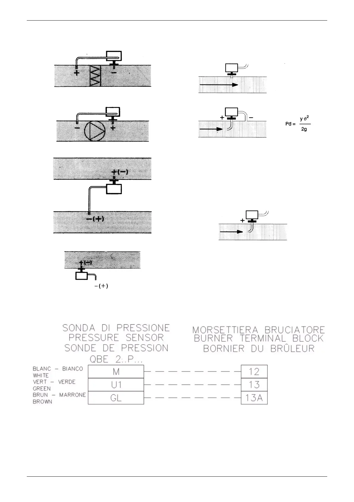 Pressure probes connection Siemens QBE 2...P... to burner’s terminal block