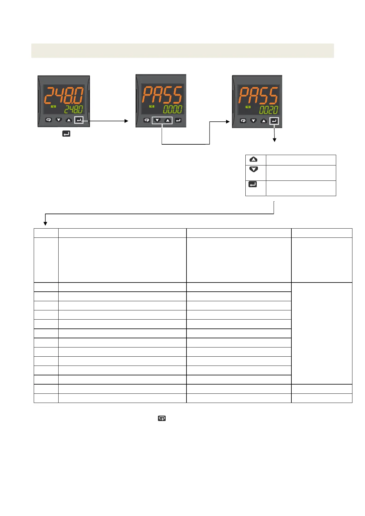 To exit the parameter setting procedure press the key (for 3 s) or wait until the timeout expiration (about 30 seconds)