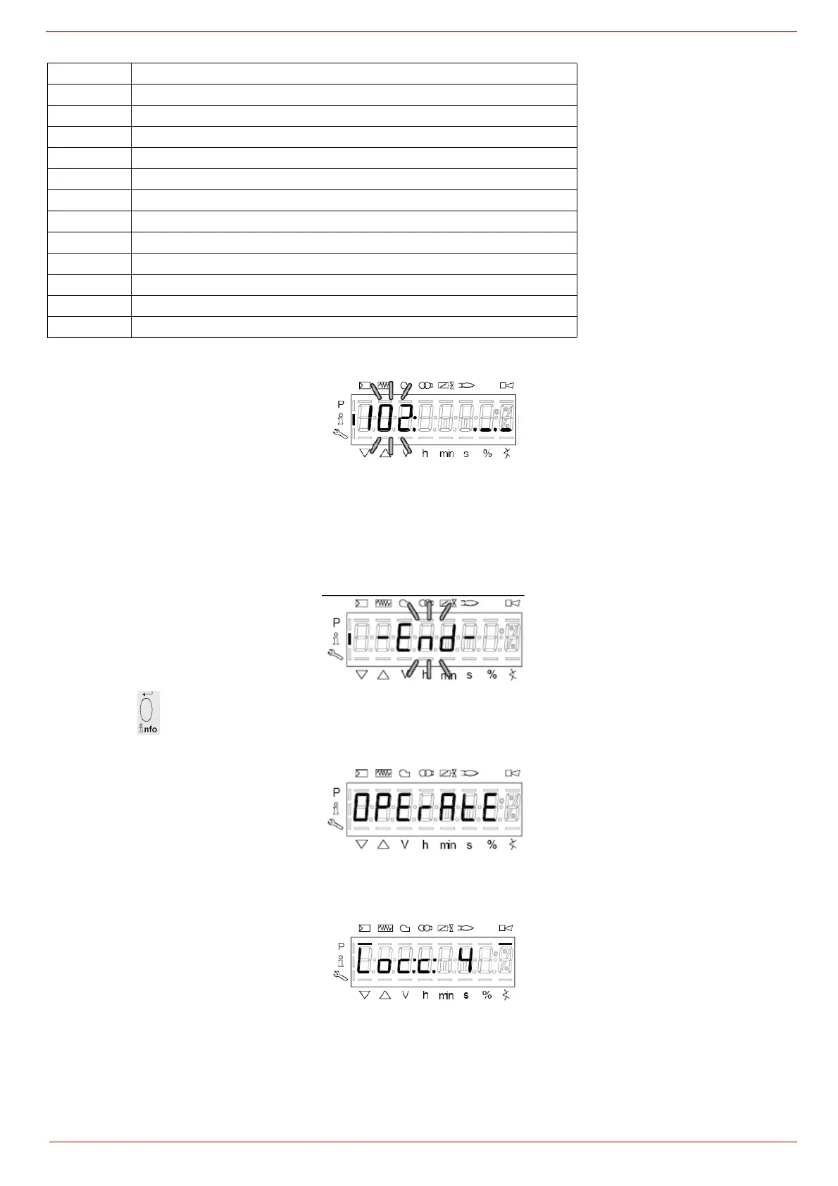 8 by pressing + / -, it is possible to scroll up/down the parameter list (see table above), or, by pressing ESC or InFo for more seconds,