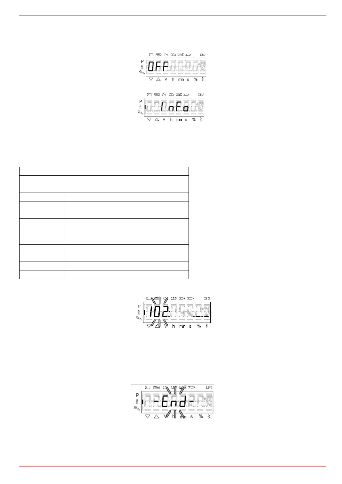 9 Once the last parameter is accessed (143) by pressing + , the End message will flash.
