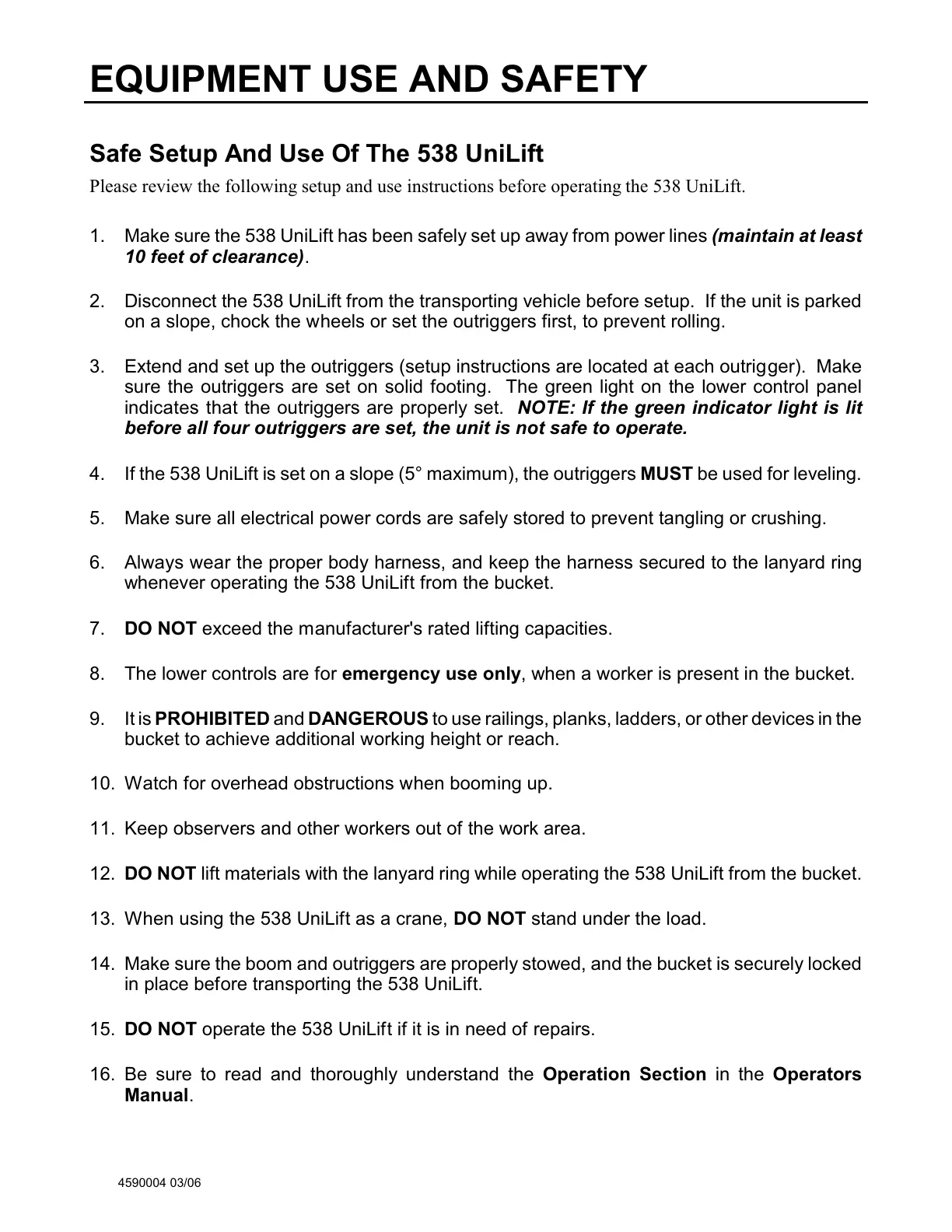 Please review the following setup and use instructions before operating the 538 UniLift.