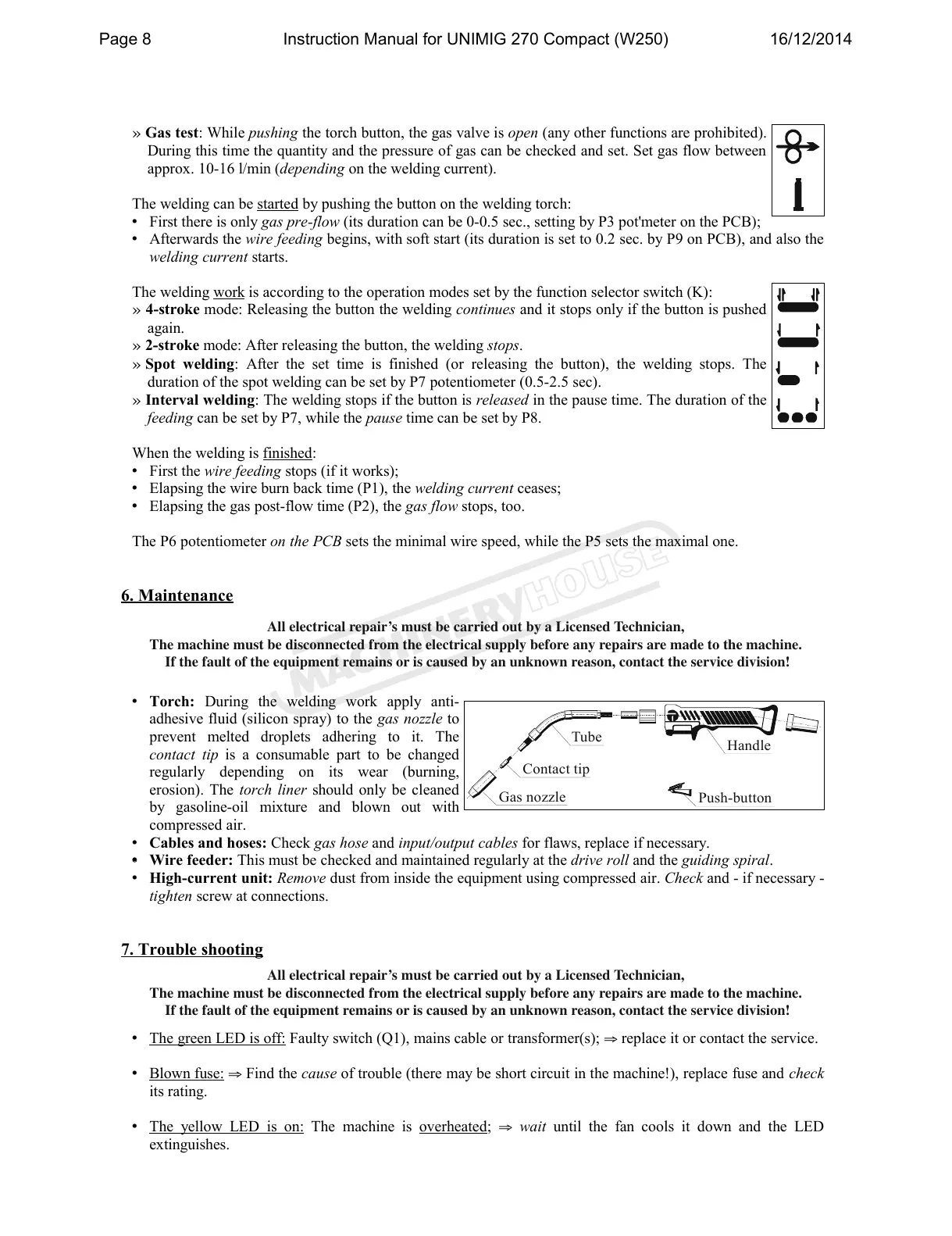 The machine must be disconnected from the electrical supply before any repairs are made to the machine.
