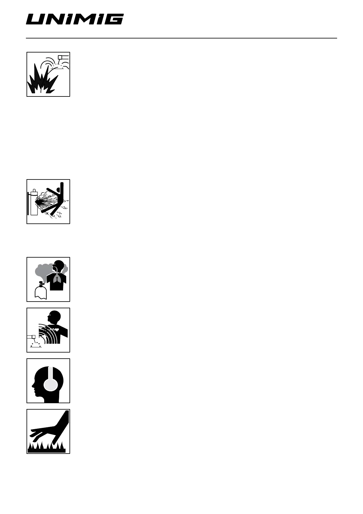 • Shielding gas cylinders contain gas under high pressure. If damaged, a cylinder can explode. Because gas cylinders usually