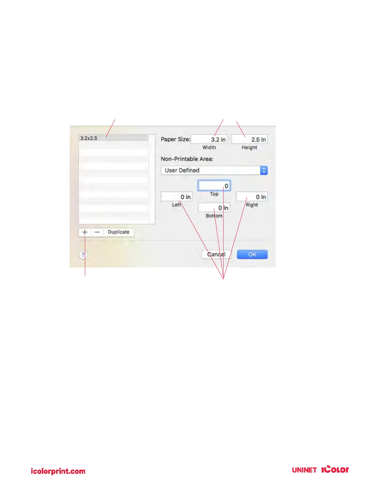 3. Enter the actual width and height of your label stock.
