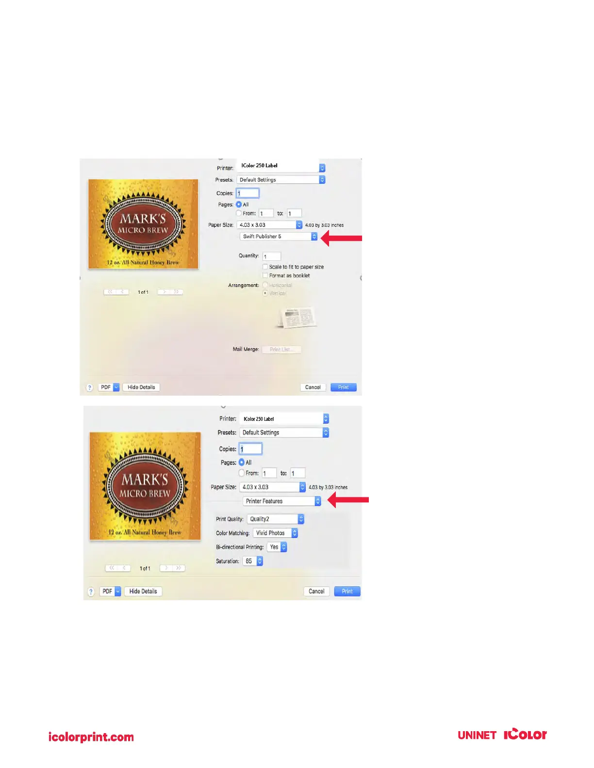 Uninet IColor 250 - Printer Driver Settings
