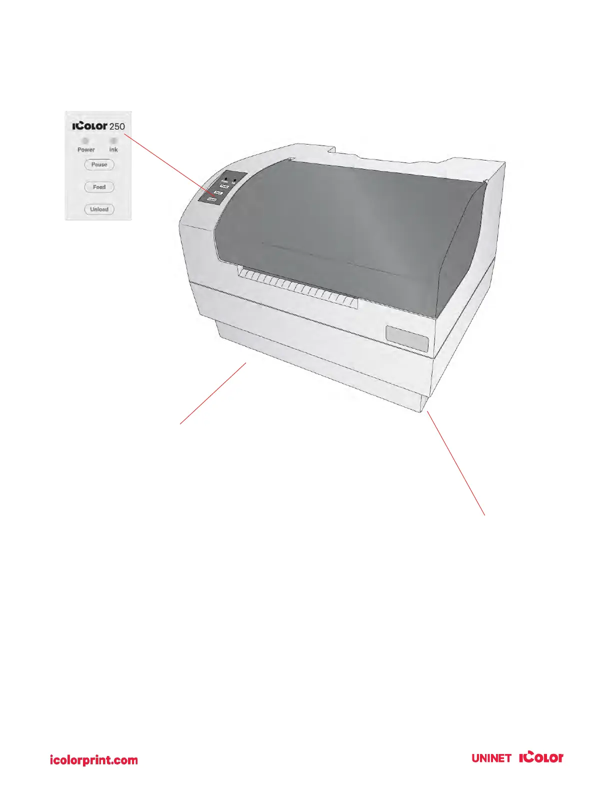 This illustration shows the printer from various angles so all-important parts can be identified.
