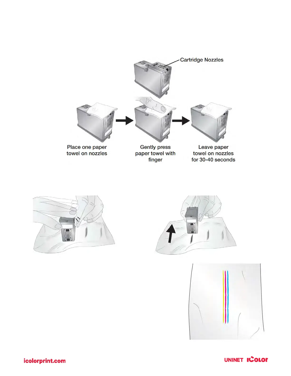Leave the paper towel on the nozzles for 30-40 seconds.