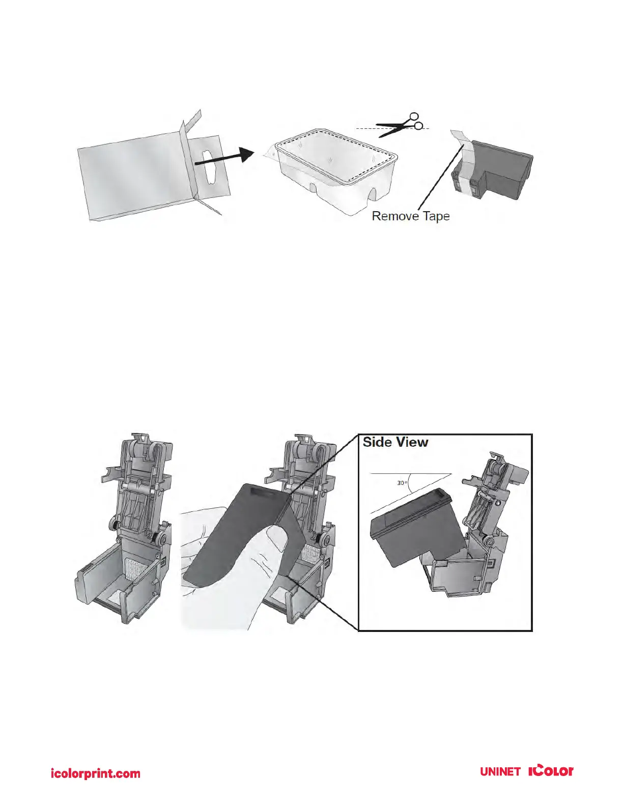 5. Place the new cartridge into the empty carriage. Note: When installing the cartridge, tilt the