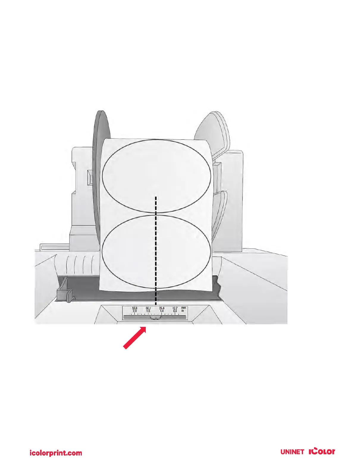 label where the circles are closest together. If the sensor is too far to the right or the left, the printer will
