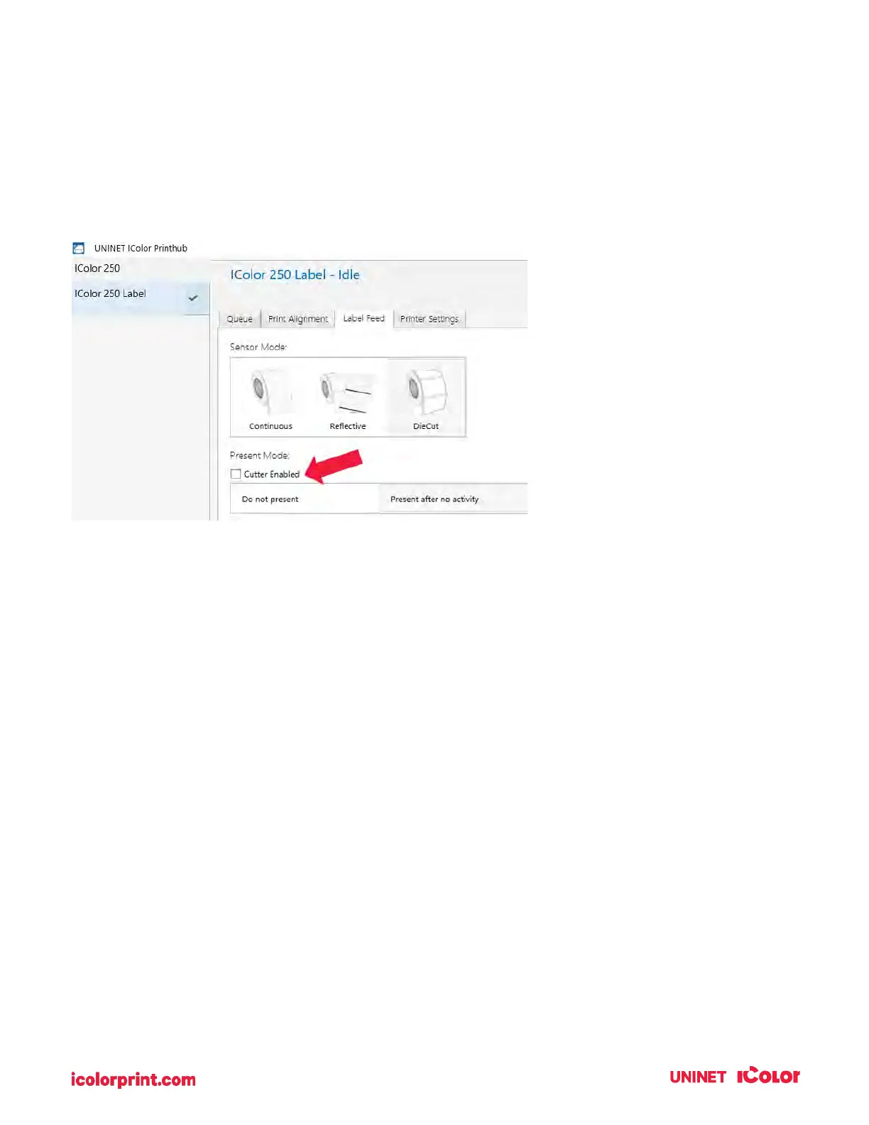 Cut after no activity. This setting will cut at the end of a print job if the printer does not receive another