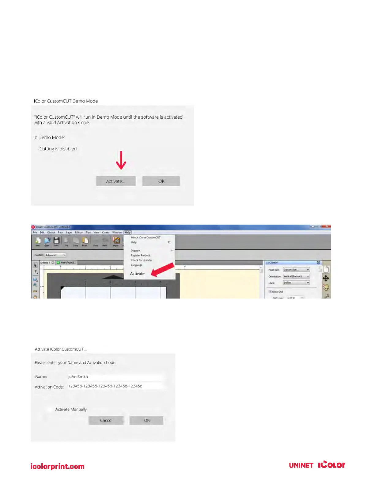 You will need to activate the IColor CustomCUT Software and will be sent an activation code in your