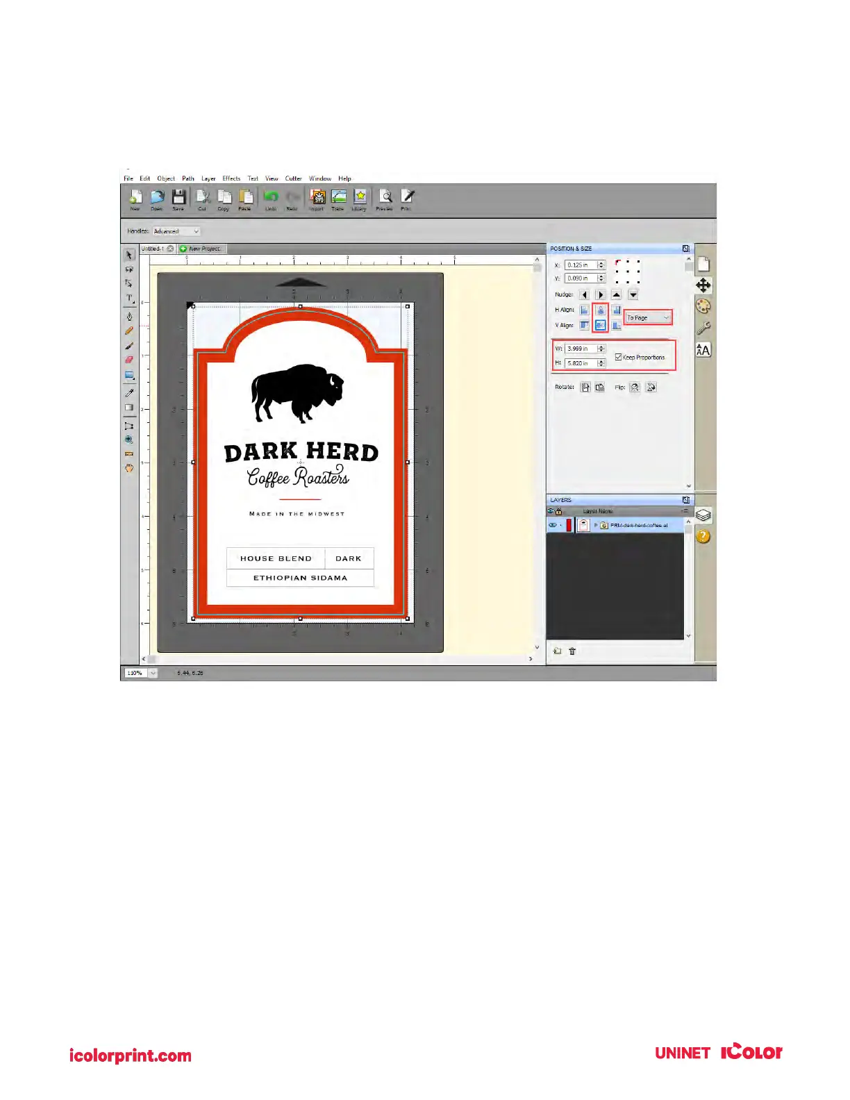 3. The file will appear on your page layout. You can manually move it on your page or increase the