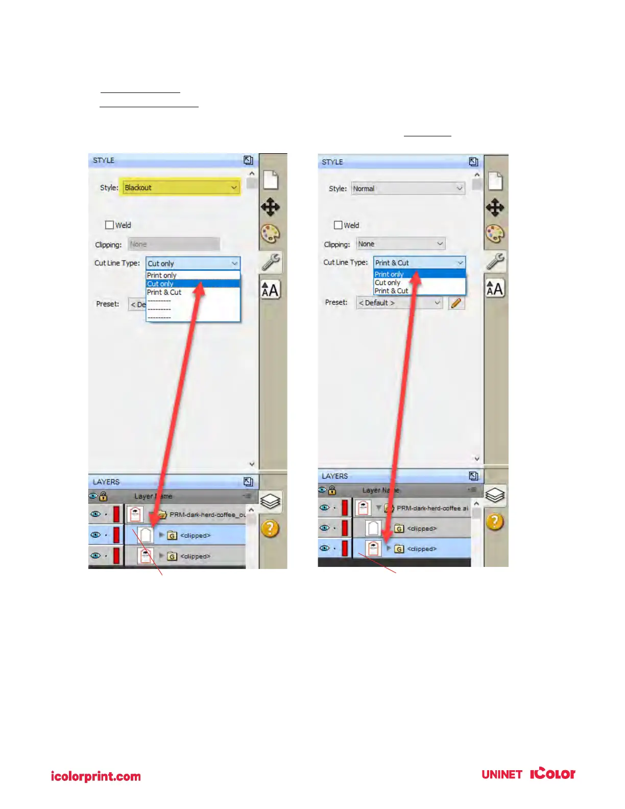 6. Now select the Print layer, click on the stye tab above, and choose Print Only.