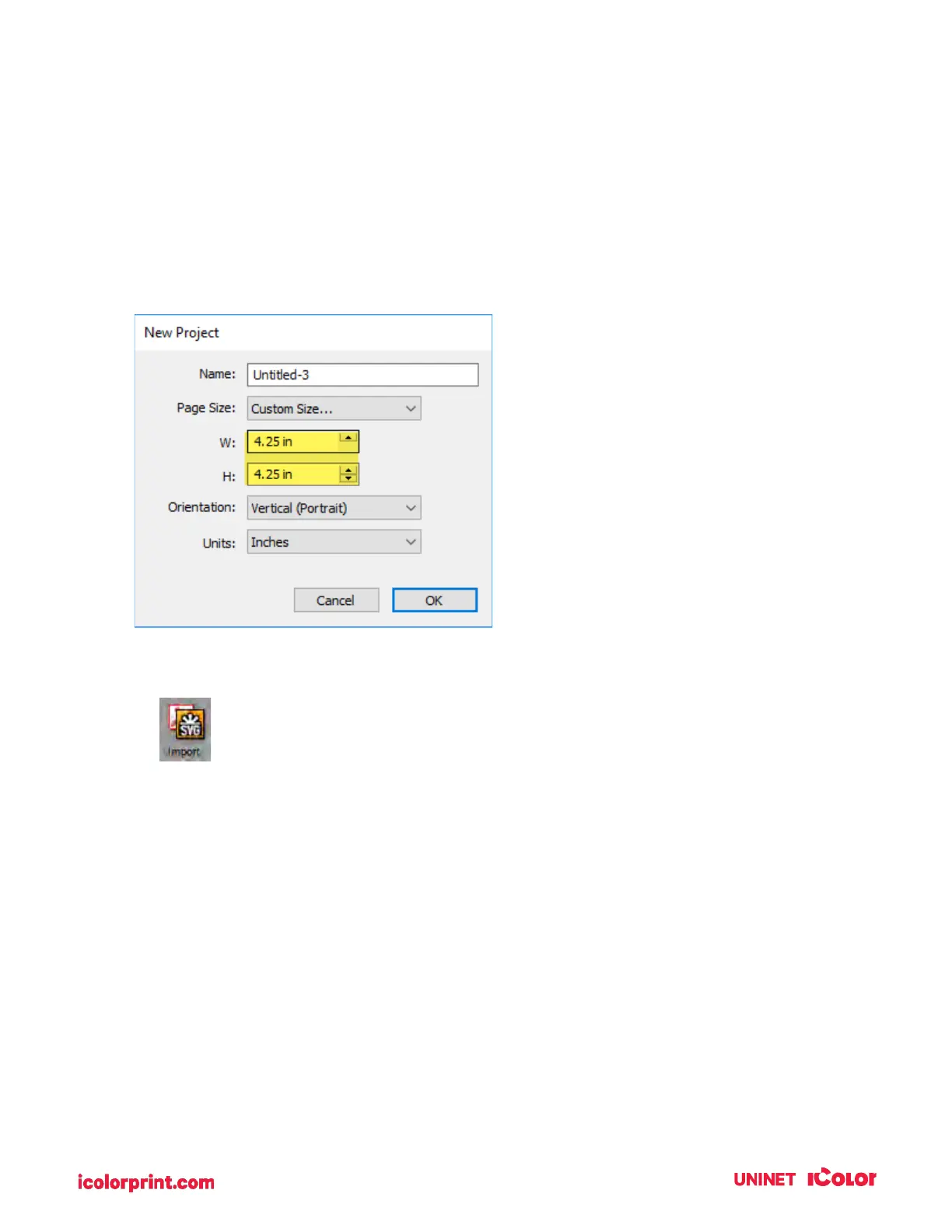 1. Create your page size. In this example, we chose 4.25” x 4.25”. You can choose a custom size